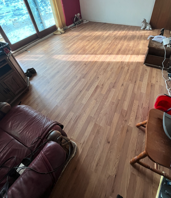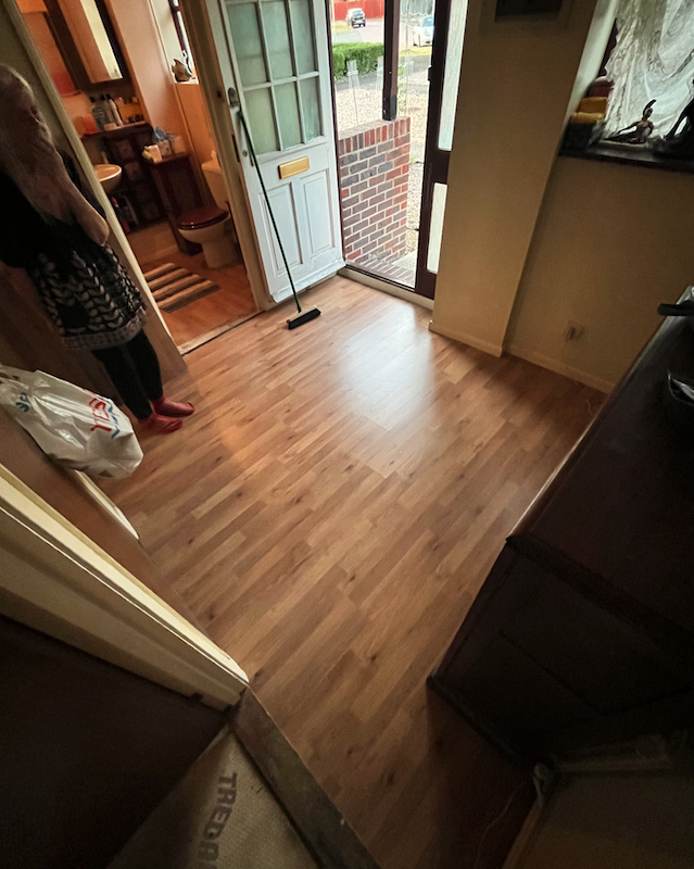 All the essence and visual appearance of real wood, and much easier and quicker to lay. Most colours are available on your local DIY store and a single room can be put down within the same day.